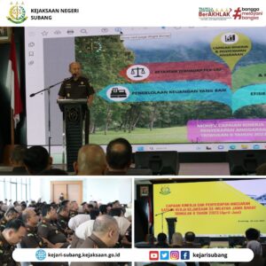 Senin, 26 Juni 2023 Kepala Kejaksaan Negeri Subang Dr. Akmal Kodrat, SH.,M.Hum didampingi Kasubagbin Sri Wulandari,SH.,MH dan Kasi PB3R Ni Luh Made, S.H, M.H. menghadiri monev capaian kinerja dan penyerapan anggaran triwulan II tahun 2023 bertempat di Kejaksaan Tinggi jawa Barat.