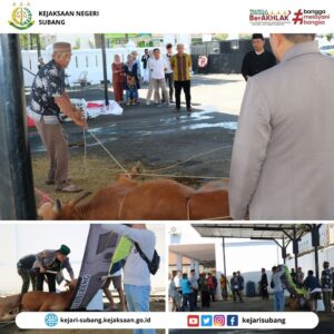 Kepala Kejaksaan Negeri Subang Dr. Akmal Kodrat, SH.,M.Hum beserta seluruh pegawai, melaksanakan penyembelihan hewan qurban yang dilaksanakan di halaman Kantor Kejaksaan Negeri Subang, pada hari Kamis (29/06/2023).