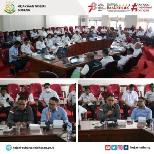 Rabu (09/08/2023). Kepala Kejaksaan Negeri Subang Dr. Akmal Kodrat, SH., M.Hum. didampingi Kasi Intelijen Akhmad Adi Sugiarto, SH., MH. bersama Kasi Datun Tubagus Gilang, SH. melaksanakan kegiatan Sinergitas Antara Kejaksaan Negeri Subang dengan Perangkat Daerah Kab. Subang, bertempat di Ruang Rapat Kantor Bupati Subang.