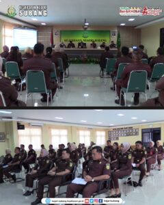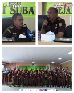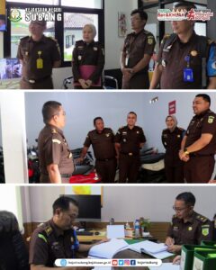 Rabu, 21 Februari 2024 bertempat di Kejaksaan Negeri Subang Subang, Kepala Kejaksaan Negeri Subang Dr. Akmal Kodrat, SH.,M.Hum. beserta Jajaran Kejari Subang menerima kunjungan sekaligus dilaksanakan Inspeksi Umum Bidang Pengawasan Kejaksaan Tinggi Jawa Barat pada Kejaksaan Negeri Subang.