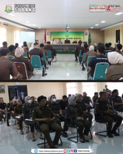 Rabu, 20 Februari 2024 bertempat di Aula Kejaksaan Negeri Subang. Kepala Kejaksaan Negeri Subang Dr. Akmal Kodrat, SH.,M.Hum. beserta Jajaran Kejaksaan Negeri Subang melaksanakan rapat persiapan pembangunan zona integritas menuju WBK/WBBM Tahun 2024.