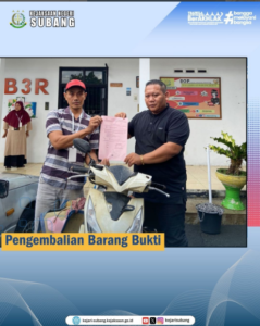 Kejaksaan Negeri Subang telah melakukan Pengembalian Barang Bukti yang telah memperoleh putusan hukum tetap (inkracht) kepada pemiliknya berupa 1 Unit Motor Honda Beat.