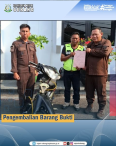 Kejaksaan Negeri Subang telah melakukan Pengembalian Barang Bukti yang telah memperoleh putusan hukum tetap (inkracht) kepada pemiliknya berupa 1 (satu) buah Motor Merk Suzuki Shogun.