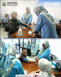 Selasa, 16 Juli 2024. Dalam rangka melakukan peningkatan pelayanan Kejaksaan Negeri Subang menyiapkan fasilitas poliklinik untuk melayani seluruh pegawai Kejaksaan Negeri Subang, PPNPN serta masyarakat yang berkunjung ke Kejaksaan Negeri Subang. Poliklinik Adhyaksa ini bekerja sama dengan RSUD Subang dan Dinas Kesehatan Subang. Konsultasi dan Cek Kesehatan dilakukan secara gratis setiap hari Selasa dan Kamis pukul 09.00 – 14.00 WIB.