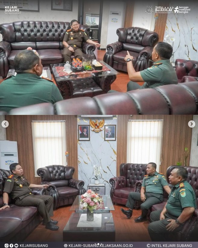 Hari ini, Letkol Czi Asep Saepudin, Dandim 0605/Subang, melaksanakan kunjungan kerja ke Kejaksaan Negeri Subang sebagai bentuk nyata dalam melanjutkan sinergi antar lembaga penegak hukum dan pertahanan di Kabupaten Subang.