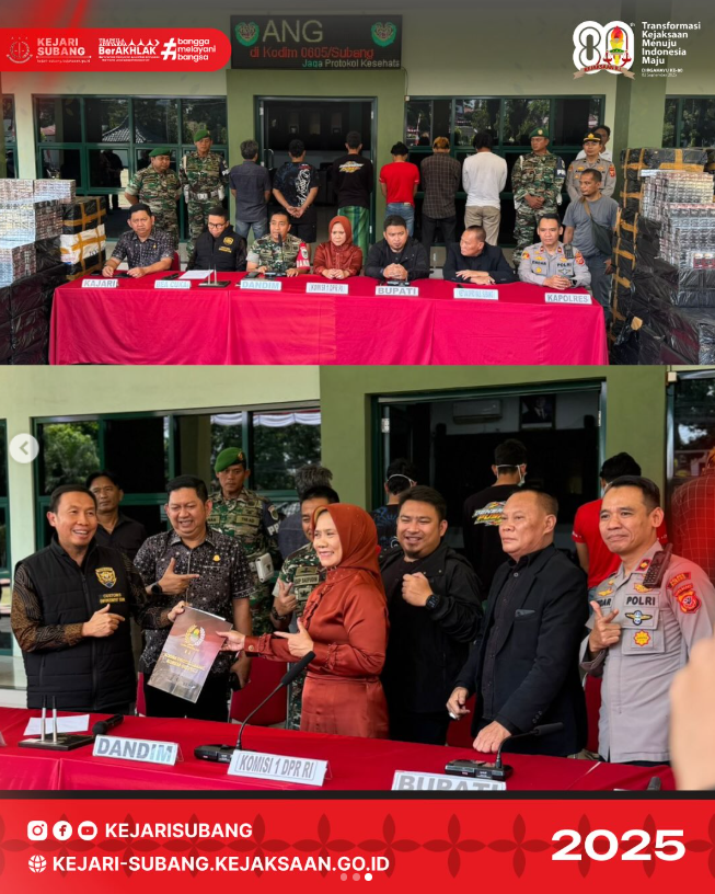Kejaksaan Negeri Subang melaksanakan kegiatan Penyerahan Barang Bukti Rokok Tanpa Cukai kepada Bea Cukai Purwakarta bertempat di Kodim 0605/Subang.